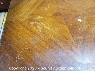 Lot Details: Various wear to finish. Solid wood construction. 29" H x 28" x 28".
