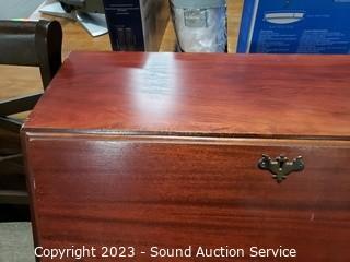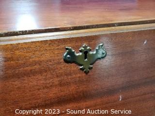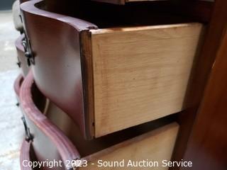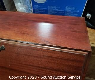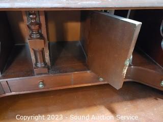 Lot Details: Skeleton key locks (no key). Center cupboard in the top knob is stripped in drawer. Some scuffs, scratches. Solid wood construction. 39" H x 29.5" W x 16" D.