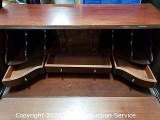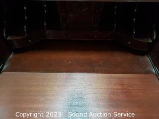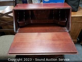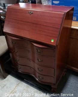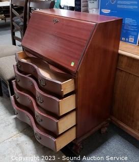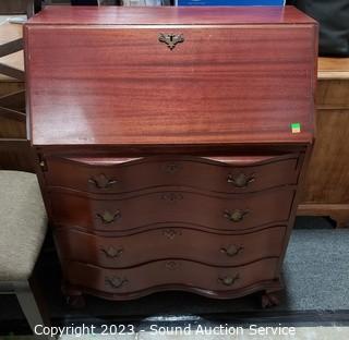 Lot #0024: Vtg Mahogany Serpentine Drop Front Secretary Desk