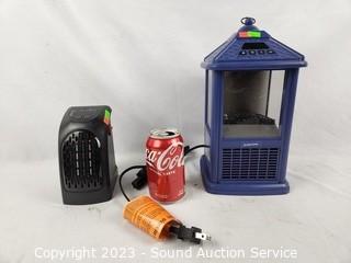 Lot Details: Handy Heater outlet heater 6" x 3.25" & Small Personal Heater 12" H x 6". Both work.