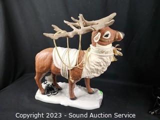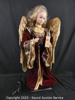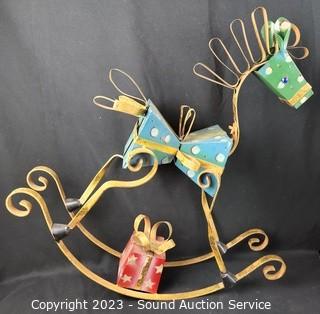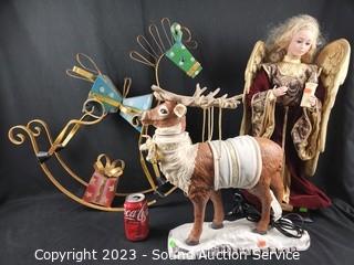 Lot Details: Metal rocking horse, animated caroler angel, & composite reindeer. 16" to 26" tall.