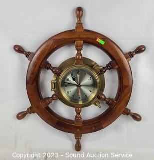 Lot #0132: 23" Nautical Ships Wheel Quartz Clock