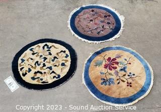 Lot #0099: 3 Round Wool Handcrafted Rugs