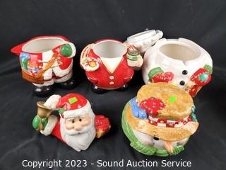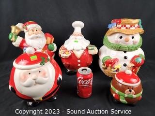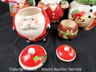 Lot #0171: 4 Christmas Cookie Jars & Sugar Dish