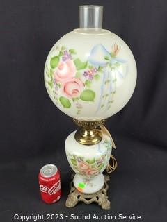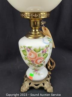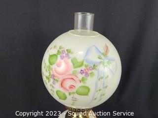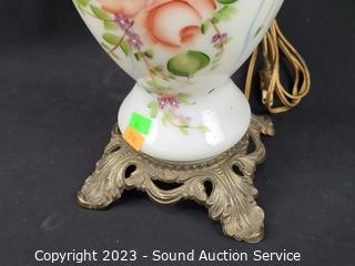 Lot #0044: Hand Painted Glass & Brass Table Lamp