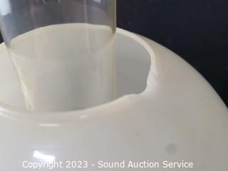 Lot Details: Works. Shade has a chip on inner top edge. 23" T x 9" diameter.