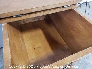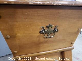 Lot Details: Various scuffs and scratches in finish. Solid wood construction. 25" H x 18" x 24".