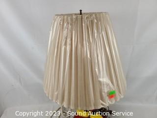 Lot Details: Lamp works, phone is untested. Appears to be in great condition. 27" T x 14" diameter shade.