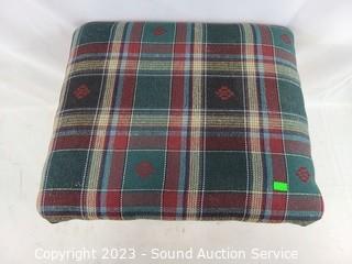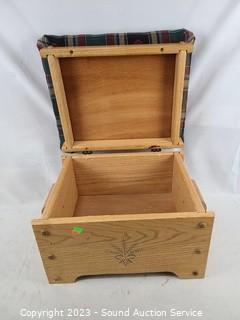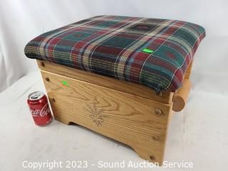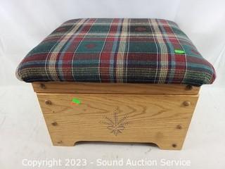 Lot #0003: Plaid Seat Wood Storage Ottoman