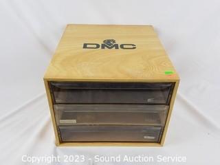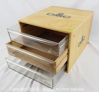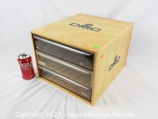 Lot #0061: Vintage DMC Wood 3-Drawer Sewing Organizer