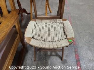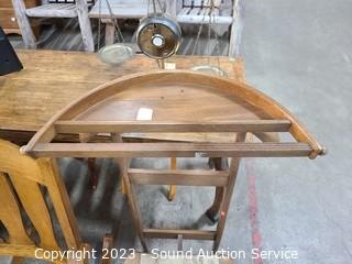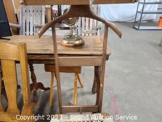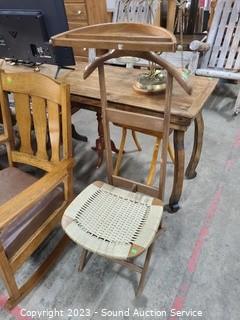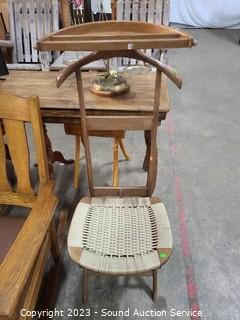 Lot #0001: Vintage Woven Seat Wood Suit Butler