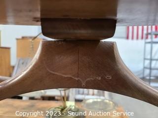 Lot Details: Very minor scuffing, overall excellent condition. Appears to be solid wood construction. 45" T x 17" W x 18" D, 17" to seat.