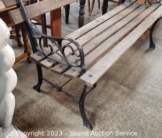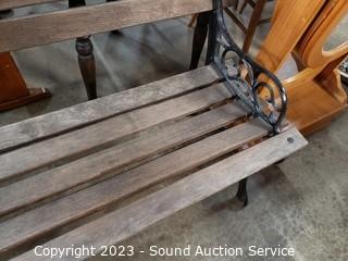 Lot #0065: Wrought Iron Wood Slat Garden Bench