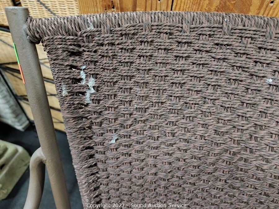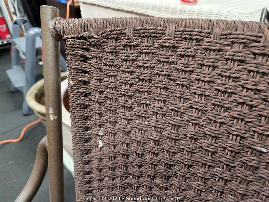Lot Details: Could use a good cleaning, some weathering & dirty spots. 34" H x 22" W x 17" to seat.