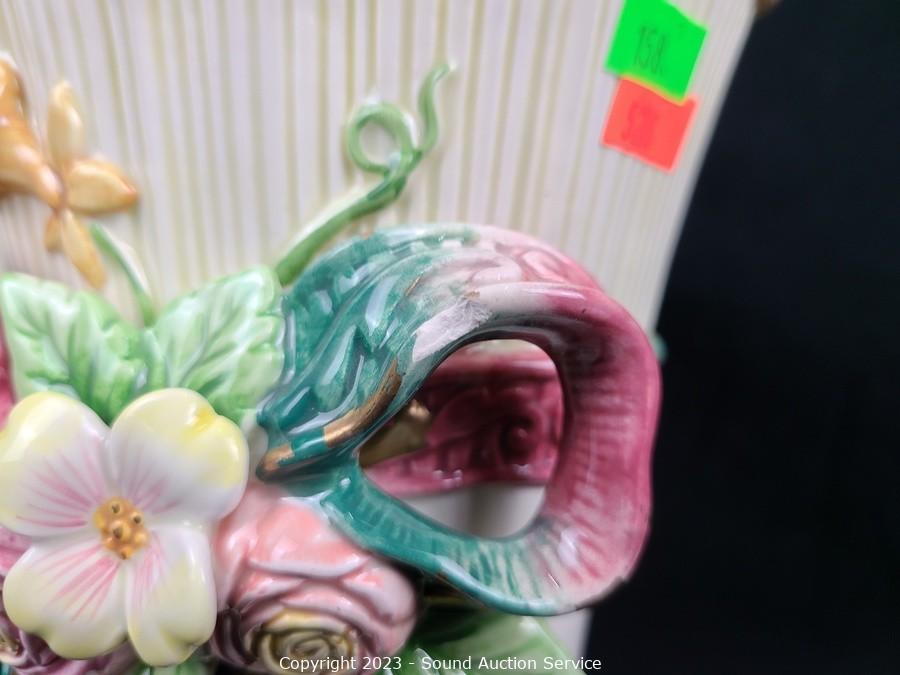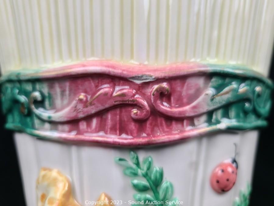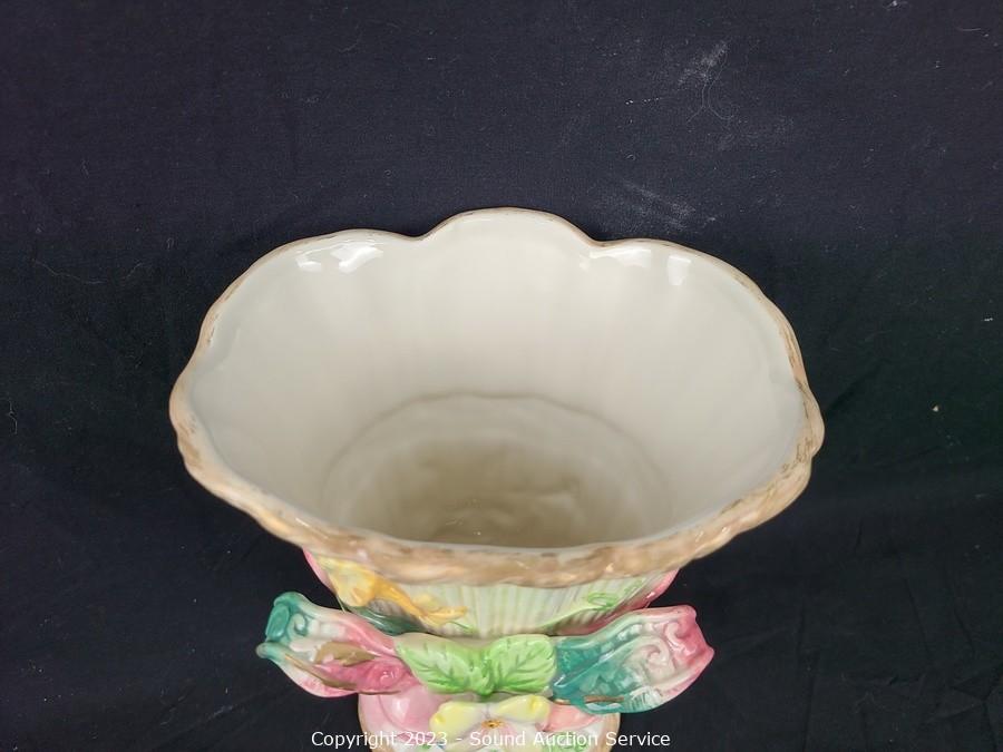 Lot Details: Both have some chips. 18" x 13.5" platter, 9.5" H x 6.5" x 5" vase.