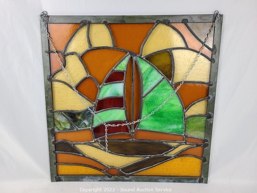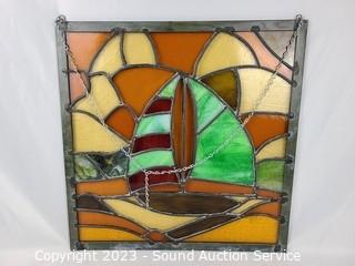 Lot #0230: Leaded Stained Glass Ship Window Decor