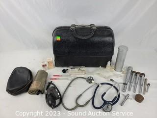 Lot #0227: Vtg. Doctor's Bag w/Medical Supplies