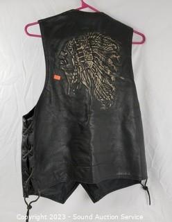 Lot #0293: Bikers Native Chief Embossed Leather Vest S:S