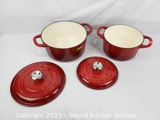 Lot #0308: 2pk Cast Iron Enamel Dutch Ovens