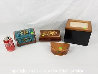 Lot #0239: 4 Wood Trinket/Jewelry Boxes