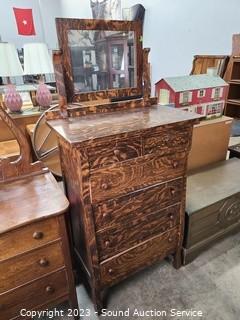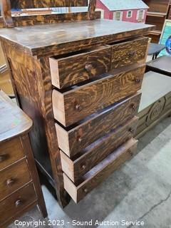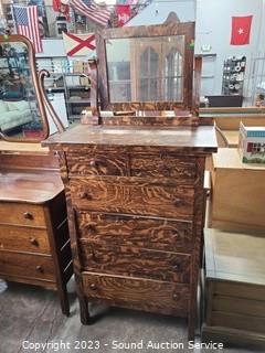 Lot #0005: 6-Drawer Tiger Oak Vanity Dresser