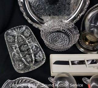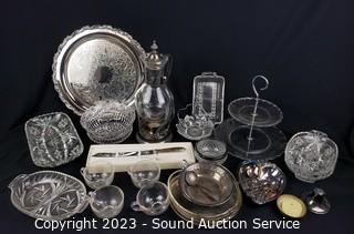Lot #0136: Assorted Silver Plate & Glassware Table Ware