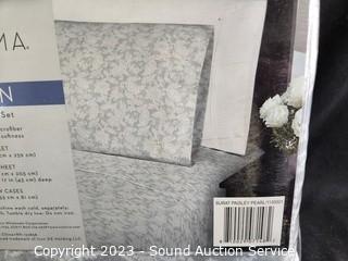 Lot Details: Surat Paisley Pearl print. 1 flat, 1 fitted, 4 pillow cases. Doesn't appear to have been removed from packaging.