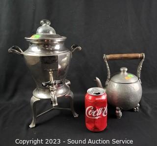 Lot #0246: Hammered Pewter Teapot & Coffee Maker