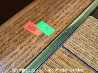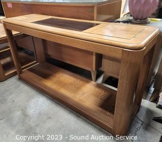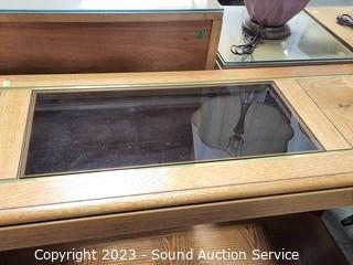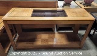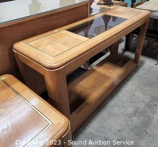 Lot #0019: Oak Glass Top Brass Accent Hall/Sofa Table