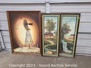 Lot #0288: Signed Original Windmill Painting & 2 Farm Prints