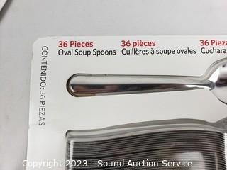 Lot Details: 36 Spoons package has been opened & 3 serving utensils, factory sealed.