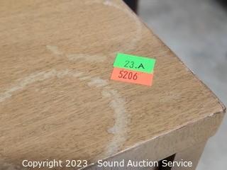 Lot Details: Made in Wisconsin, solid wood construction. Matches the previous lots. Various wear to finish. 38" H x 57" W x 9" D.