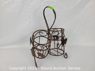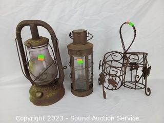 Lot #0152: 2 Rustic Lanterns & Dual Bottle Wine Rack