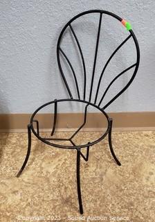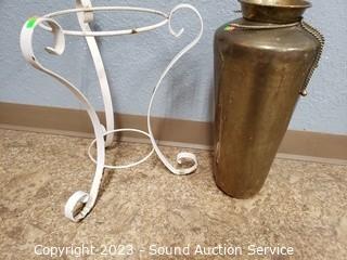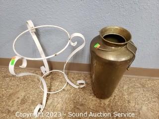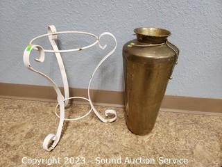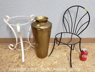 Lot #0265: 2 Wrought Iron Planter Pot Stands & Brass Vase