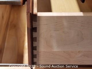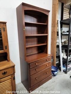 Lot Details: Solid wood construction, 3 drawers, dovetail joinery, 3 adjustable shelves. 78.5" H x 32" W x 12" to 18" D.