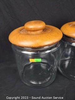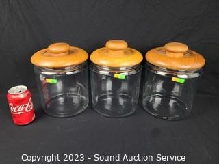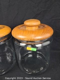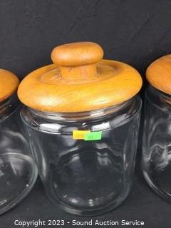 Lot #0160: 3 Glass Canisters w/Genuine Teak Wood Lids