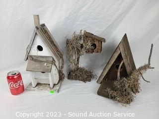 Lot #0151: 3 Rustic Wood Birdhouse Lawn & Garden Decor