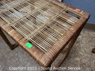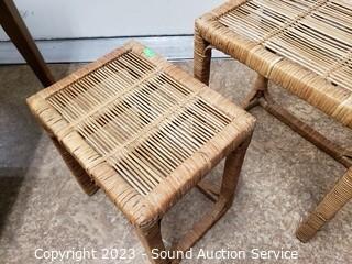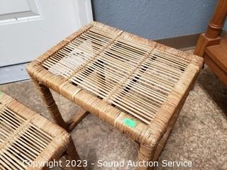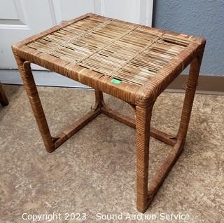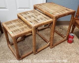 Lot #0257: 3 Wicker & Bamboo Wove Nesting Table Set