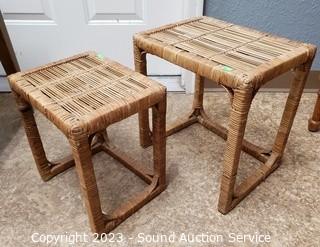 Lot Details: Largest table has a break in the wicker/bamboo on the top. 12" H x 11.5" x 8.5", 14" H x 13.5" x 10", 16" H x 16" x 12".