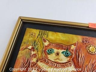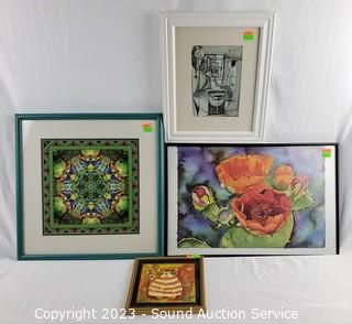 Lot Details: Don't see any signature. 1 look to be original nude abstract sketch, one is an abstract butterfly photo, owl plaque. 6.5" x 6.5" to 11" x 17".