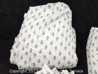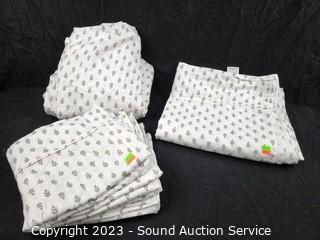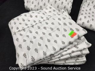 Lot Details: White plant print. 1 flat, 1 fitted, 4 pillow cases.