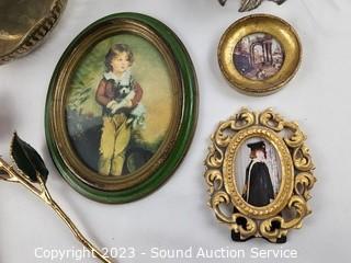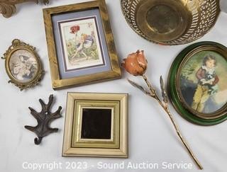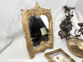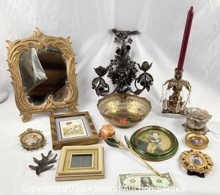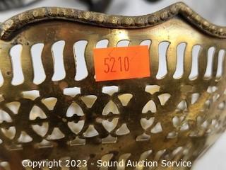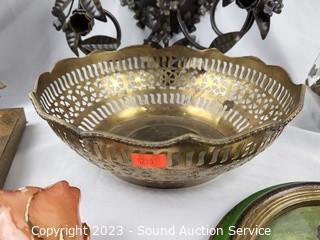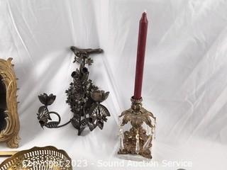 Lot Details: Metal Sconce candle holder, marble base candle holder, wall decor, pierced brass bowl. Refer to photos for more info .