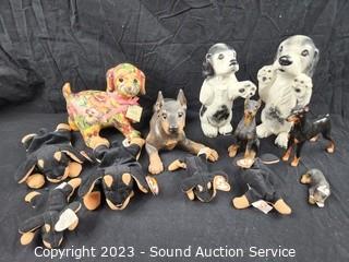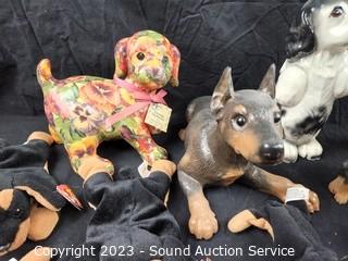 Lot #0188: Assorted Plush & Ceramic Porcelain Dog Figures