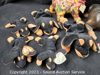 Lot Details: Joan Baker Patchwork porcelain, 2 Clay Sketched Pasadena (1 bottom is cracked, damaged), 5 TY beanie babies, 1 Royal Doulton porcelain, 1 Sandicast, 1 PL initialed. Approx. 5" to 8" tall.