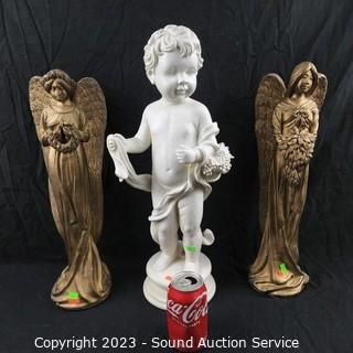 Lot #0194: Ceramic Angel Candle Holders & Child Statuaries