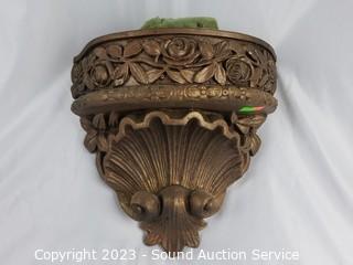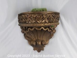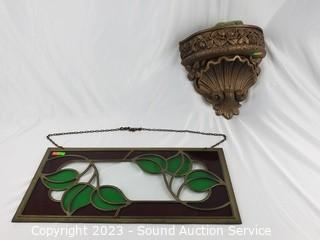 Lot #0133: Ornate Sconce Planter Pot & Stained Glass Decor
