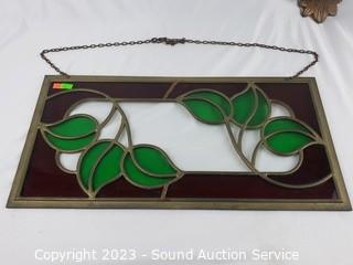 Lot Details: 12" H x 11" W x 5" D composite sconce. 10.5" x 20" stained glass window decor.