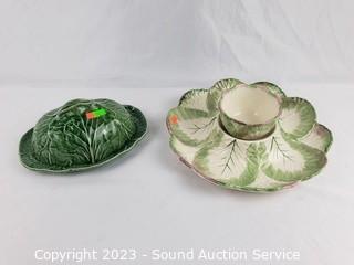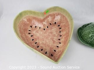 Lot Details: Portugal Leaf Dishes, Salt & peppers, watermelon hear bowl, leaf chip & dip server. Don't see any major issues.