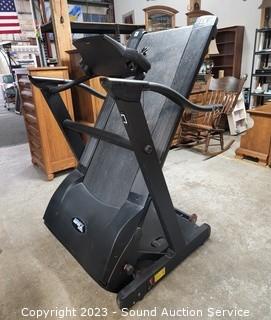 Lot Details: Power folds up for easier storage. It is quite heavy, not easy to move, does have wheels for easier movement. All functions appear to be working as intended, digital display, heart rate monitor, incline, etc. 58" H x 70" L x 38" W.