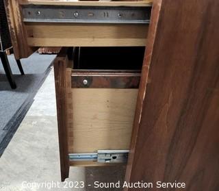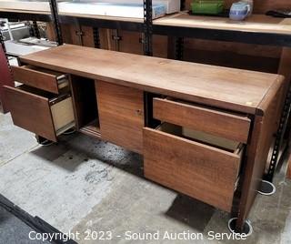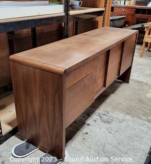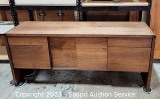 Lot #0166: Teak Finish Office Credenza Cabinet